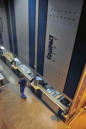 The company has eight Compact Lift units for managing its entire stock of spare parts. The vertical storage lifts create good order and control for stock handling. Furthermore, by extracting a balance via the business system Monitor, the spare part inventory is finished very quickly. Thanks to the equipment being so flexible, they have succeeded in reusing both pallet collars and plastic boxes from previous stores in the vertical storage lift, resulting in considerable savings.