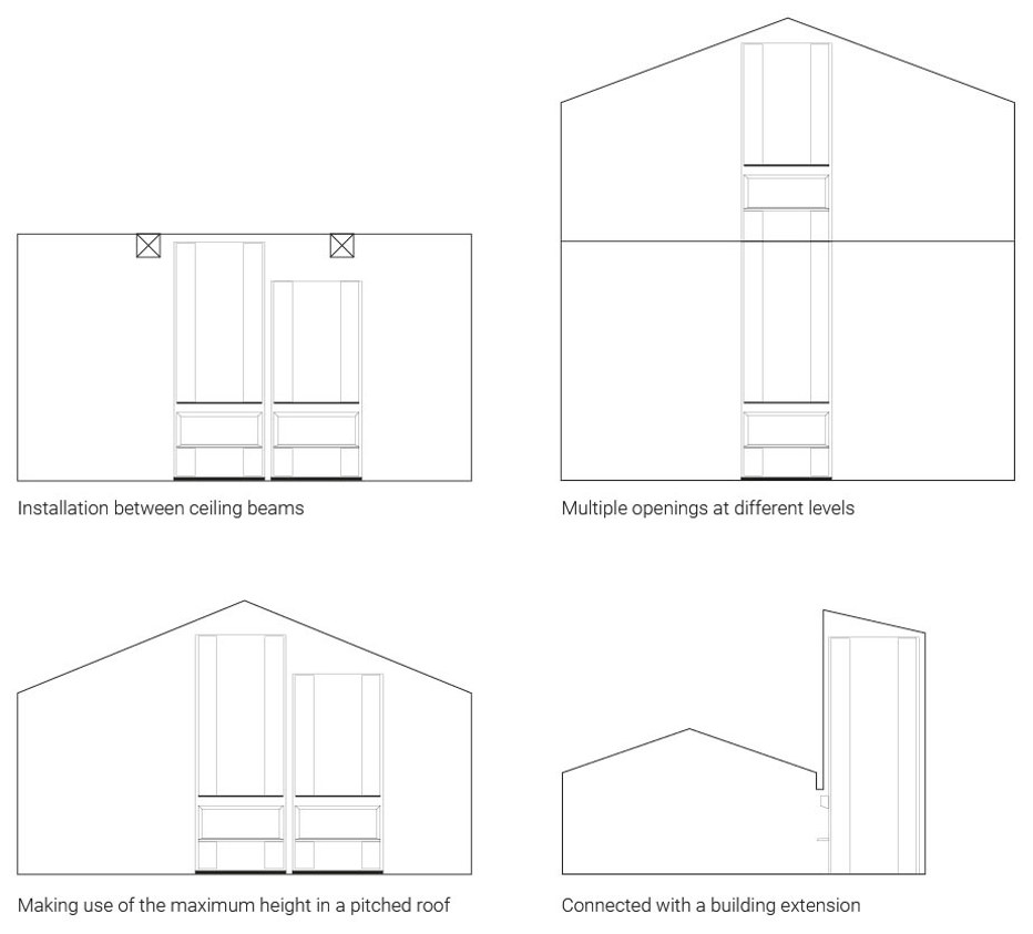 Compact vertical storage lifts vary in height between 3 and 16 meters. Using existing premises as a template, with their varying ceiling heights, joists, door placements, and truck paths, etc., we make sure that we maximize storage volume on using the minimal amount of floor space.